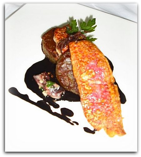 Pigeonneau Roti aux Epices et Foie Gras Poêlé, Légumes et Fruits d'Automne, Jus d'une Sangria