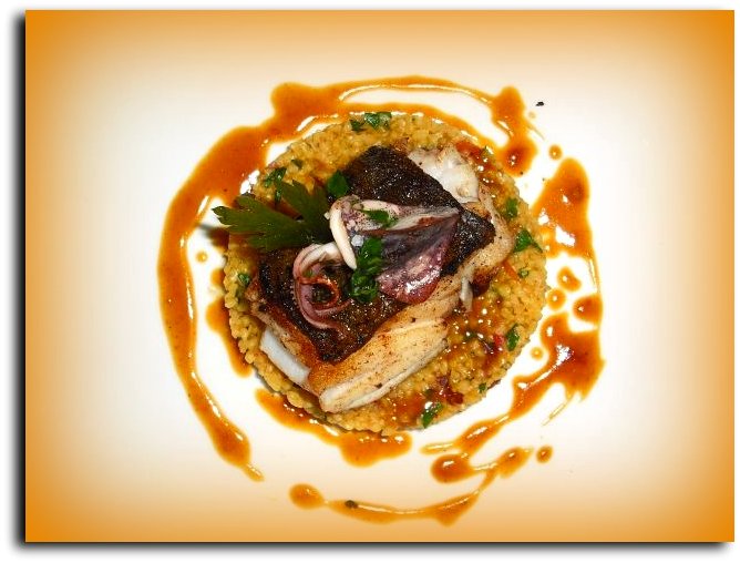 Dos de cabillaud rôti, boulgour braisé au safran et chorizo